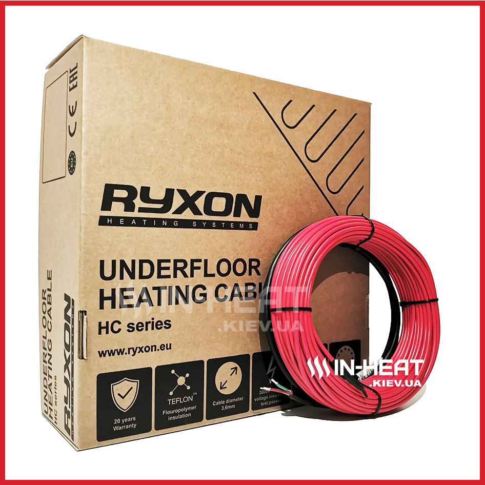 Нагрівальний кабель Ryxon HC-20 - тонкий нагрівальний кабель товщиною 3.5 мм з питомою потужністю 20 Вт / м.п. Використовується для облаштування теплої підлоги під плитку. Виробляється в Латвіїї. 20 років гарантії.